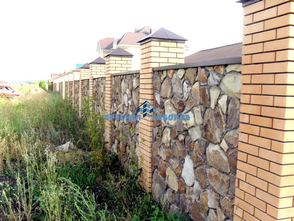 Кирпичный забор с камнем 15 соток